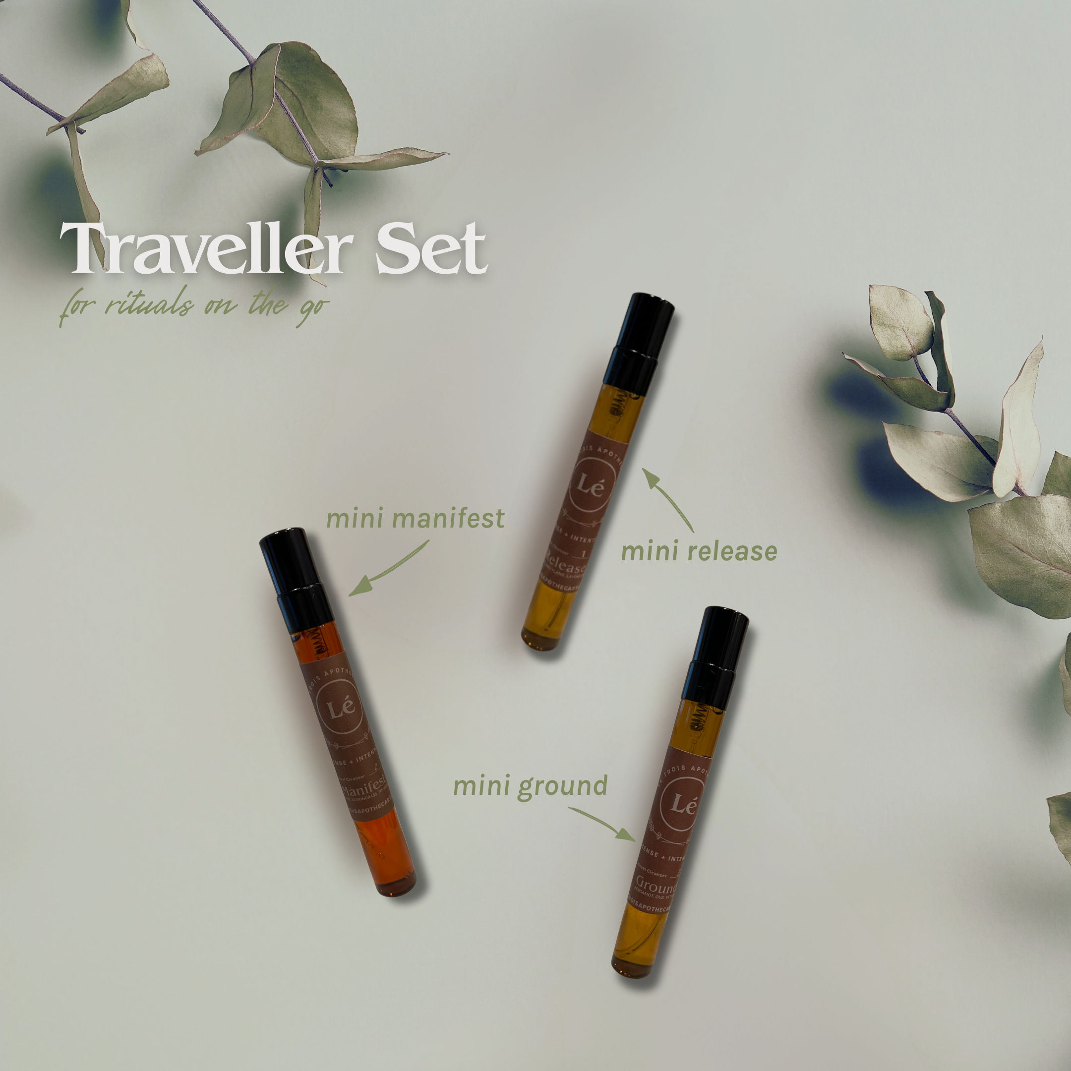 Journey with purpose wherever you go. This travel-sized trio (10ml) of our signature Ritual Cleansers invites you to release, manifest, and ground to bring balance, clarity, and calm to every destination. A thoughtful companion for moments of renewal, reflection, and reconnection.